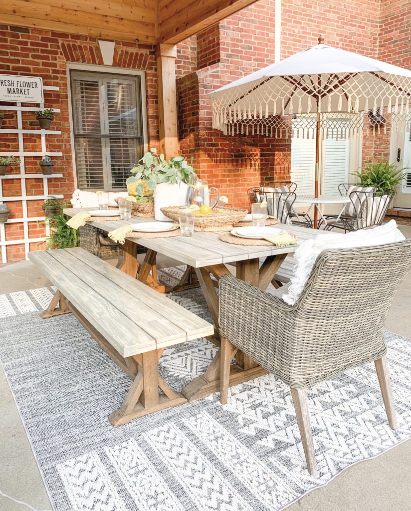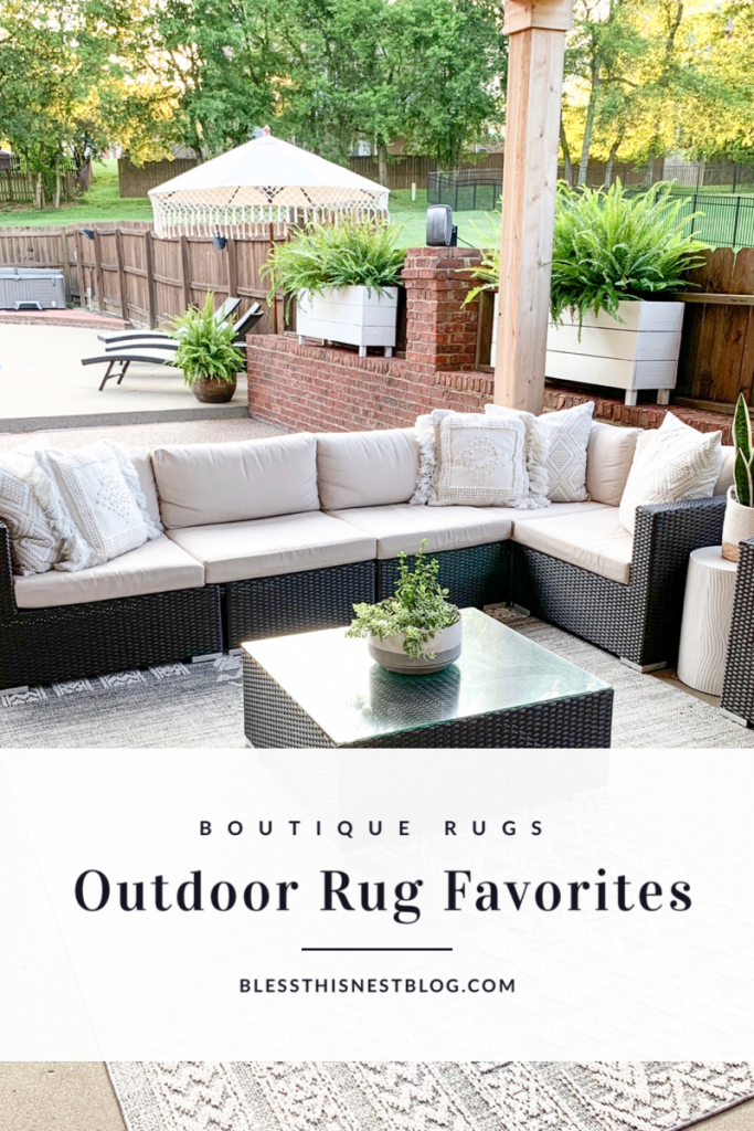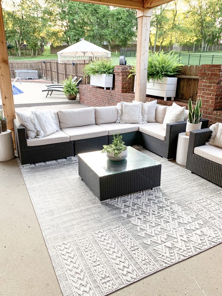 Who’s ready for an outdoor rug roundup? Today, I thought it would be fun to share with you a quick review of my outdoor rug from Boutique Rugs along with a roundup of all of my outdoor rug favorites from Boutique Rugs. Last week, I shared a full tour of this space, but I wanted to go into more details on my rug since I get so many questions about it. So, before I share all of my favorites, let me share with you a few reasons why I love this outdoor rug from Boutique Rugs so much.